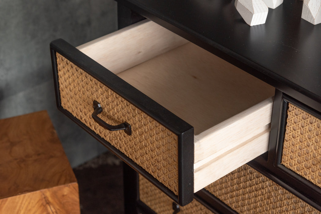 天然ラタンを使用したブラックカラーのTVボード&チェスト