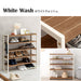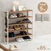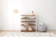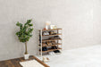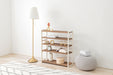 サンダルからブーツまで、靴の高さに合わせて棚の高さを組み換えできるシューズラック。