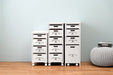 全体サイズ:約W30×D40×H79cm 収納カゴ 1段目:約W23×D34.5×H4.5cm 2段目:約W23×D34.5×H10.5cm 3段目:約W23×D34.5×H31cm |