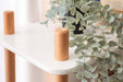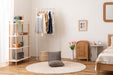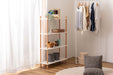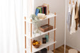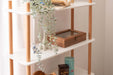 ホワイトの棚と天然木のナチュラルカラーな支柱が優しい印象を与えてくれる、3サイズのラックです。