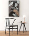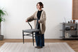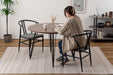 ゆったりと身体を預け、リラックスできる角度に設計された背もたれと、そこから伸びたハーフアームがポイントとなっているチェア。
