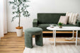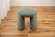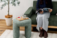 角の丸いフォルムが魅力的で、心地良い肌触りのブークレ生地を使用したスツール。