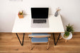 作業でもデスクワークでも機能や強度を持たせつつ余計なものは取り除いた極限までシンプルなデザインのデスク。