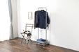 バスケット付きハンガーラック。