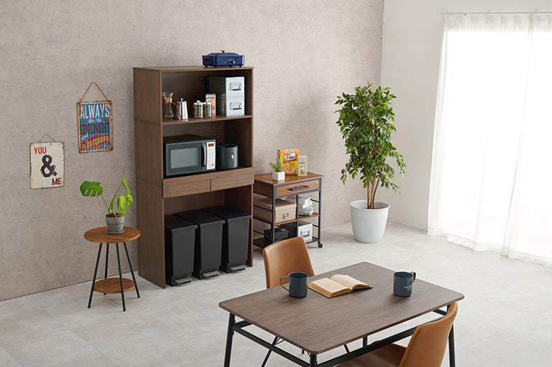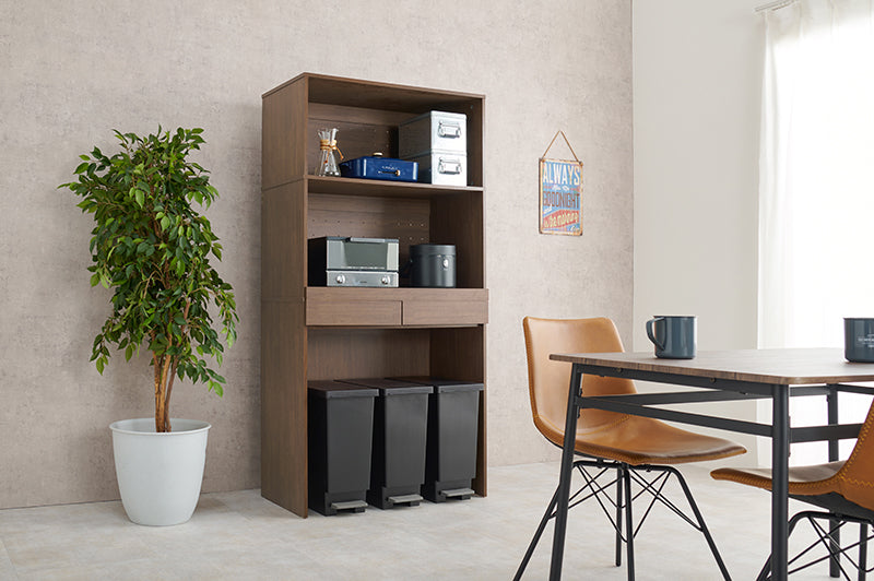 出し入れしやすいオープンタイプの多機能収納でキッチンスペースを有効活用可能。