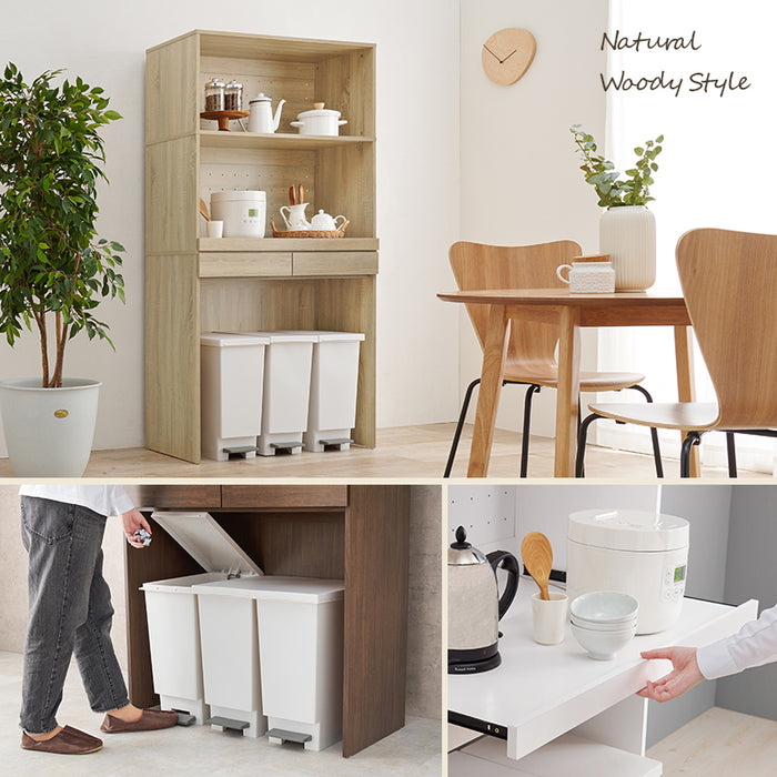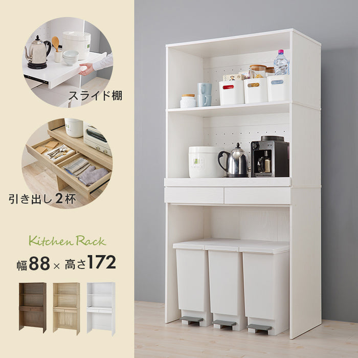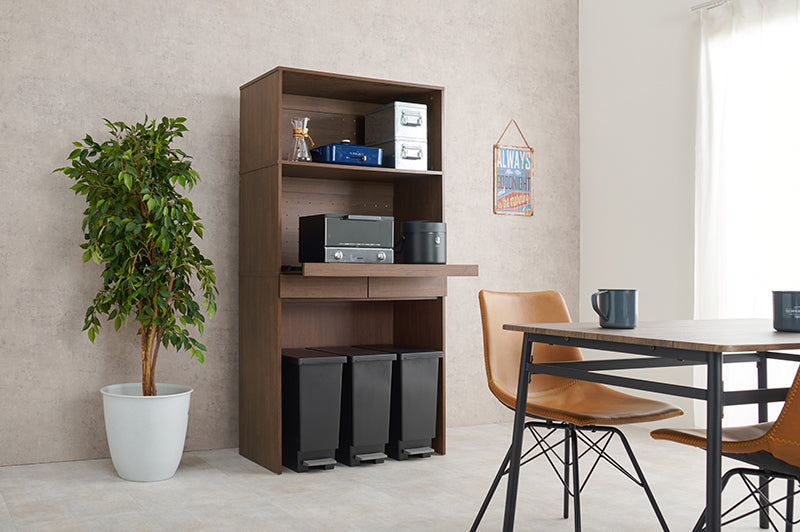 引出しやスライド棚付きでキッチン家電も使いやすい。