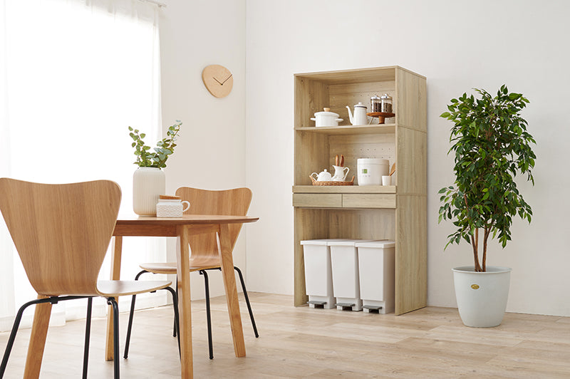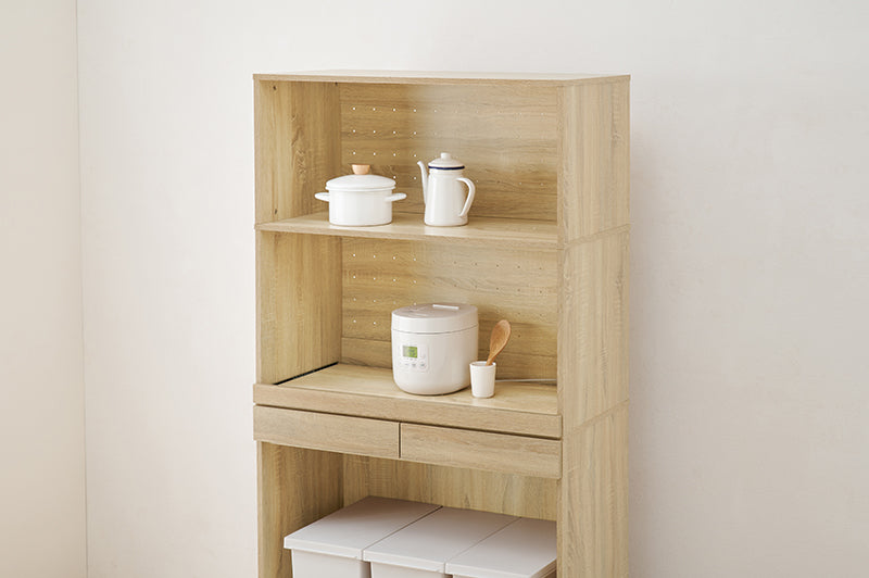 出し入れしやすいオープンタイプの多機能収納でキッチンスペースを有効活用可能。