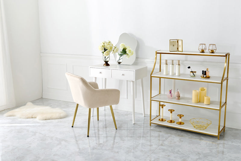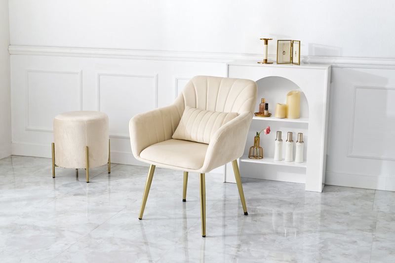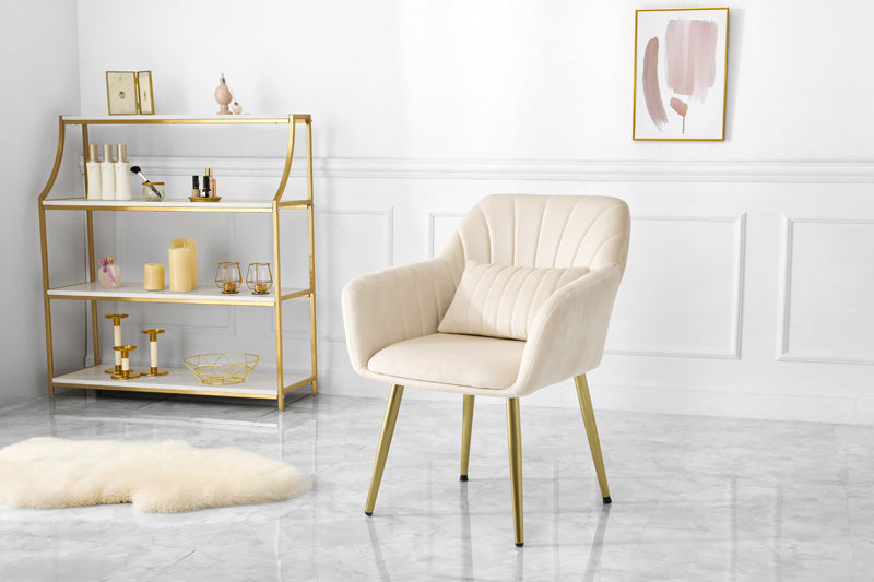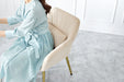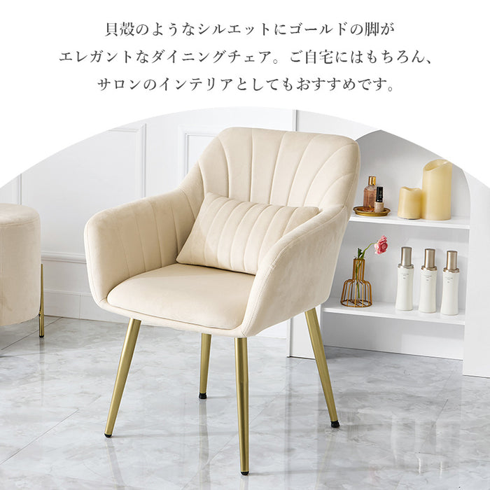 貝殻のようなデザインの座面にゴールドの脚がエレガントなインテリアチェア。