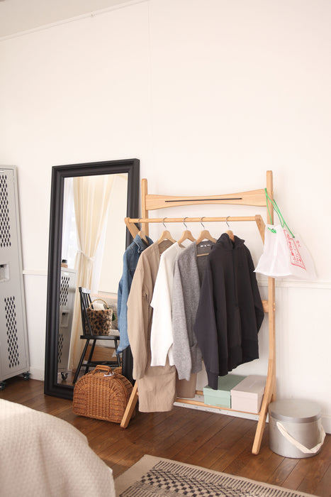 頭から足先まで、全身を映せる大型のスタンドミラー。