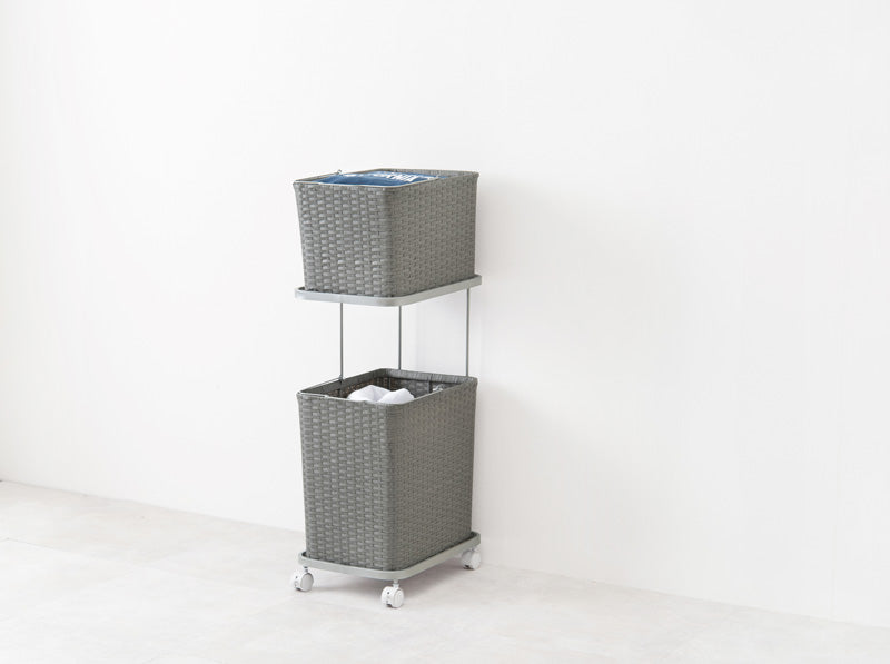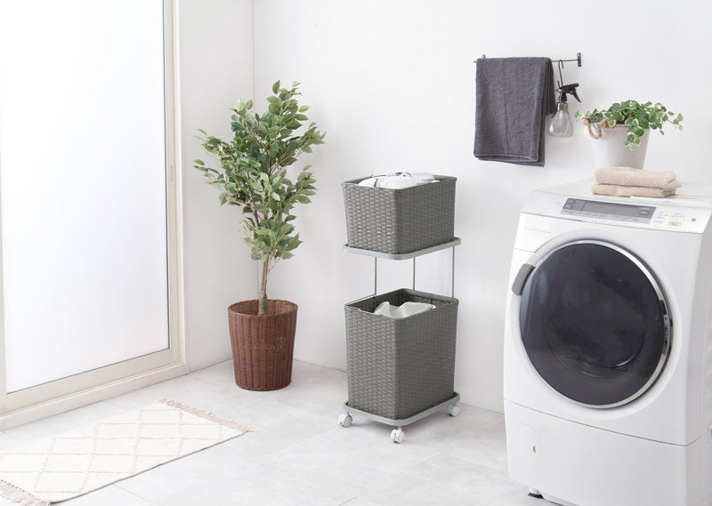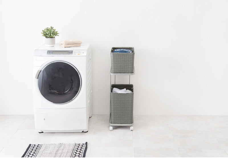 大きめのタオルや洗濯物の放り込みも手軽にできる収納力で、2個のバスケットでまとめられるので、家事の時間短縮にもなります。