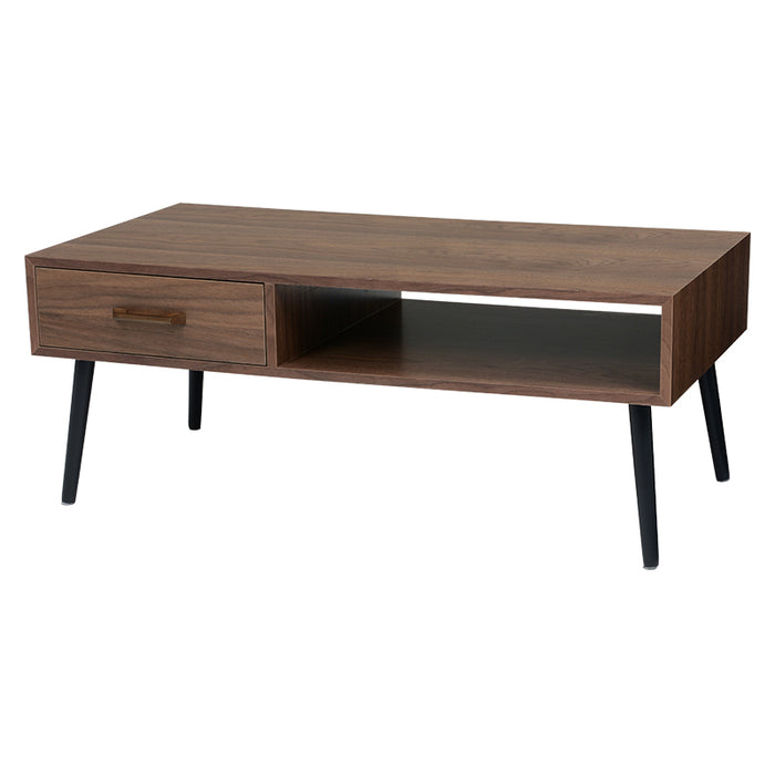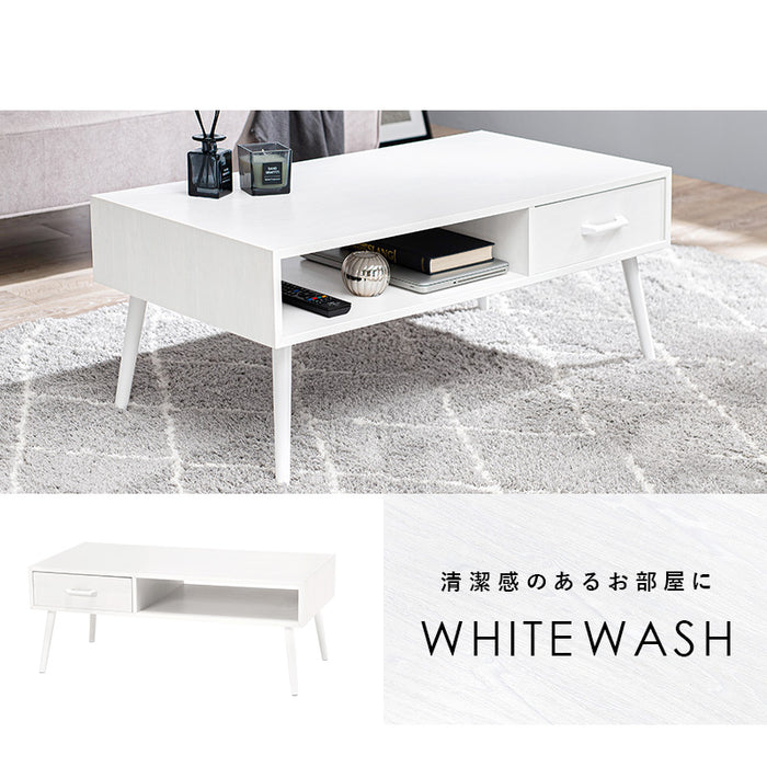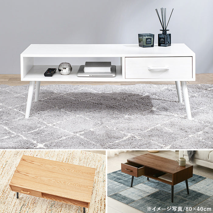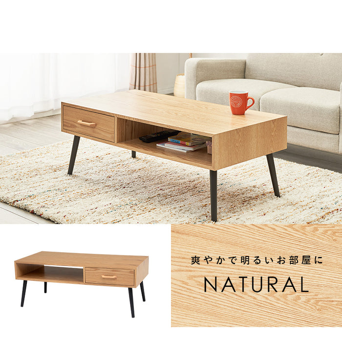 天然木の風合いを感じられるモダンなデザインの引出し付きローテーブルです。
