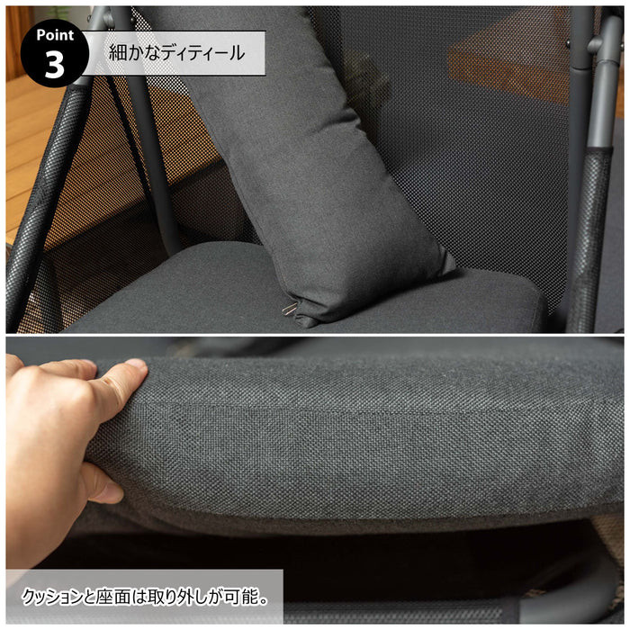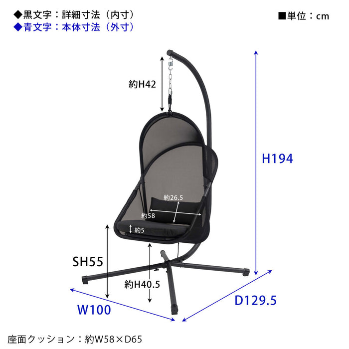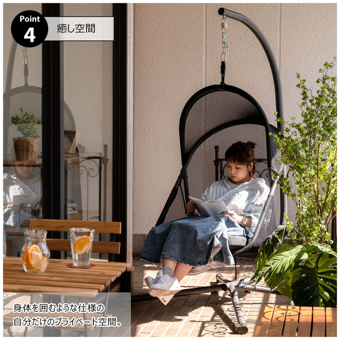 しっかりした設計でゆったりリラックスできるハンギングチェア。