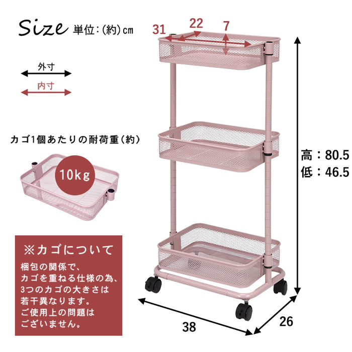 物が落ちにくい細かいメッシュのマルチワゴンです。