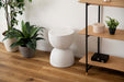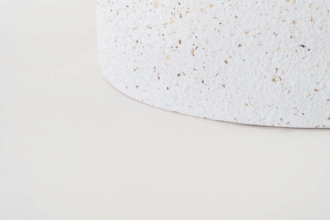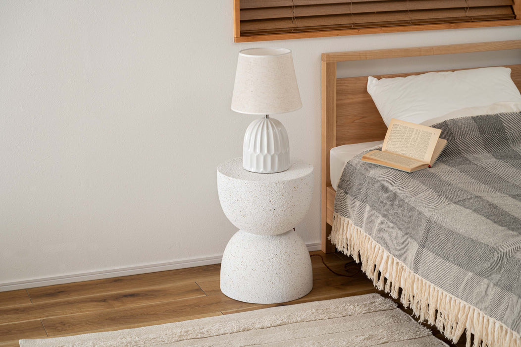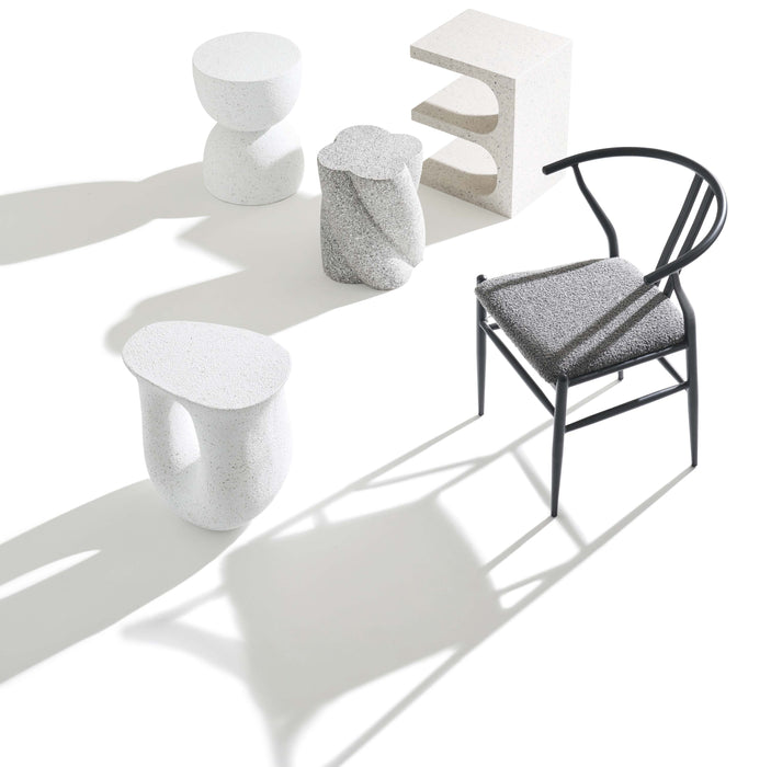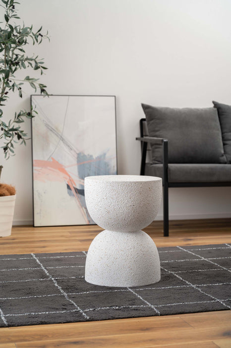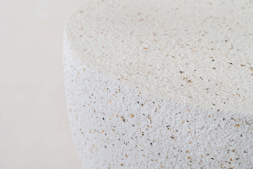 ざらりとした石のような質感とユニークな形が特徴のサイドテーブル。