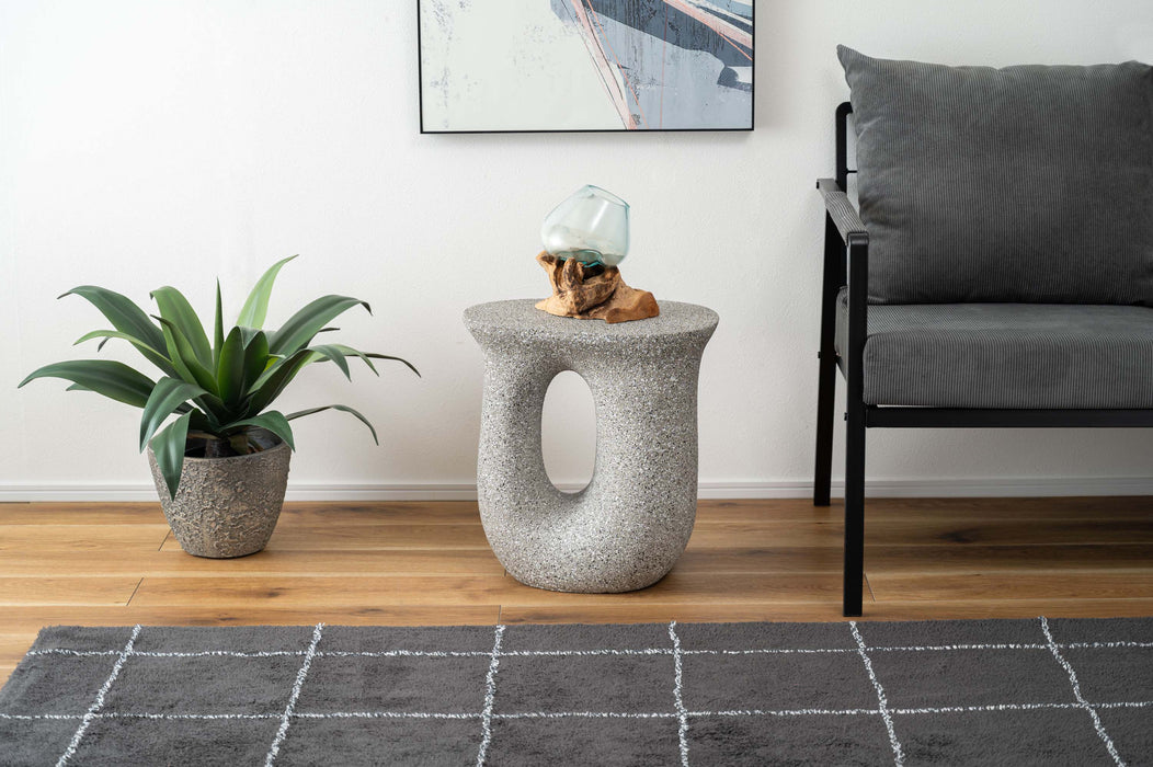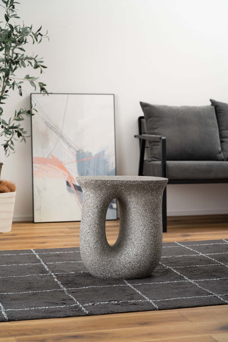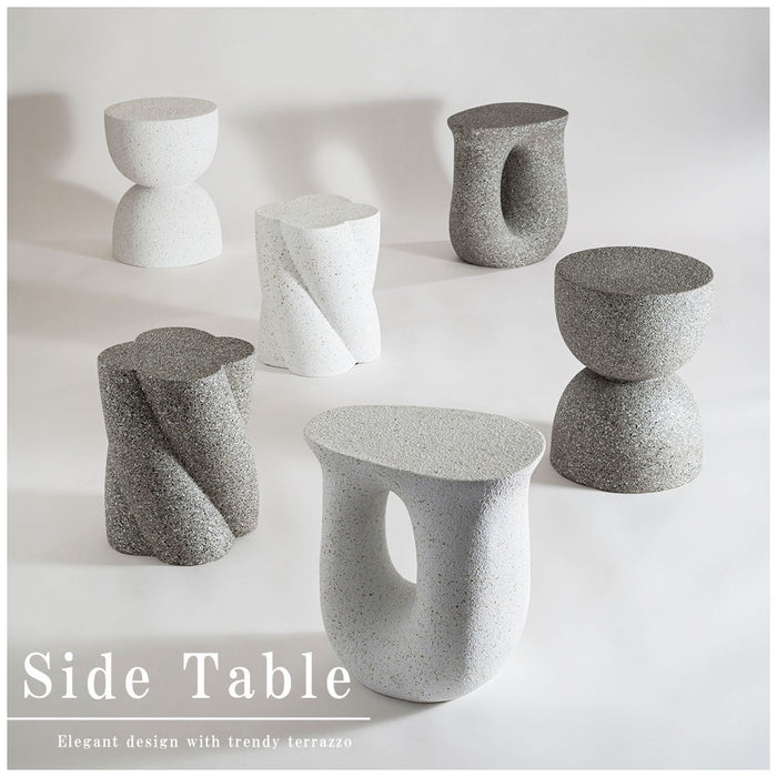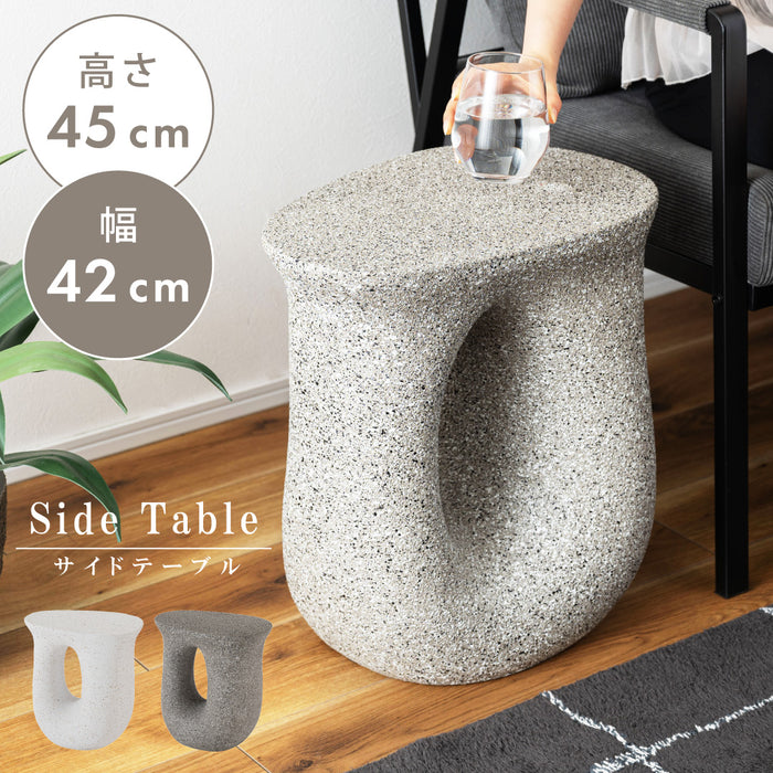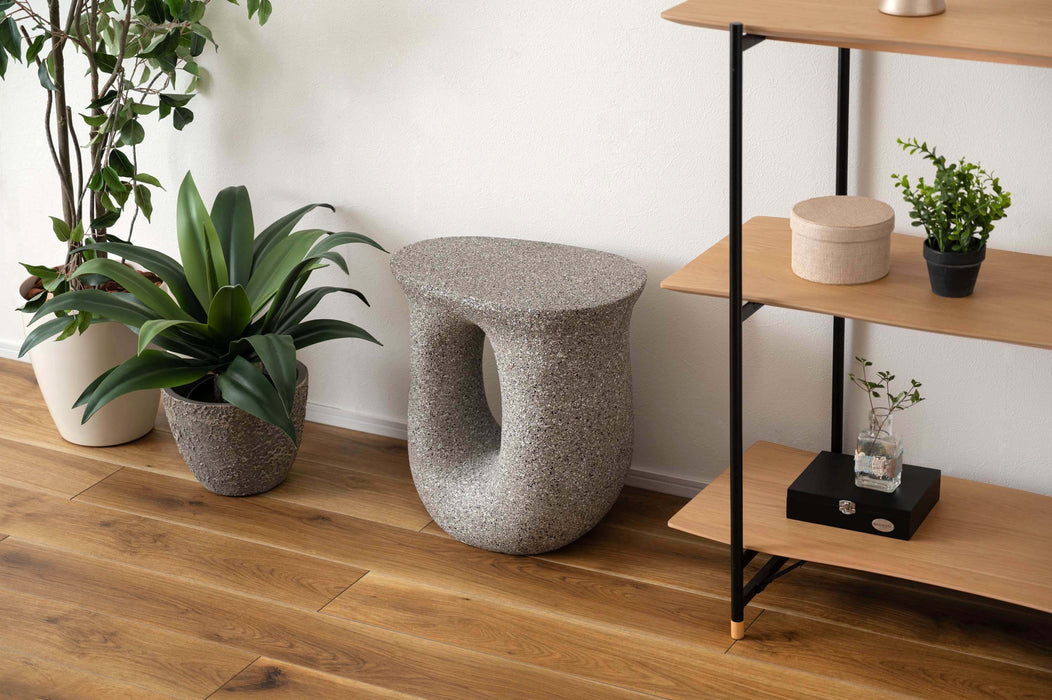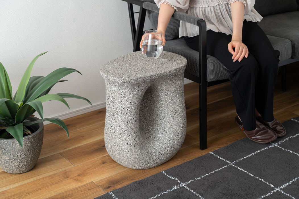 ざらりとした石のような質感とユニークな形が特徴のサイドテーブル。