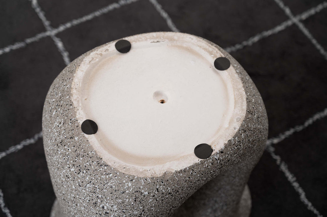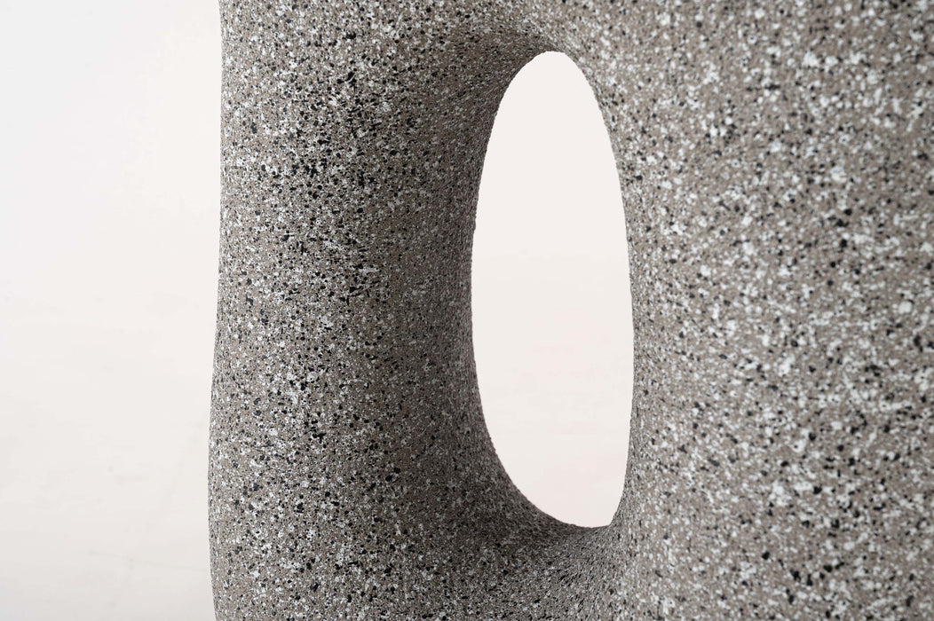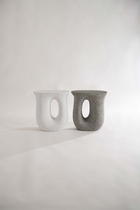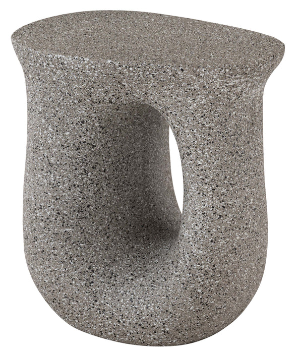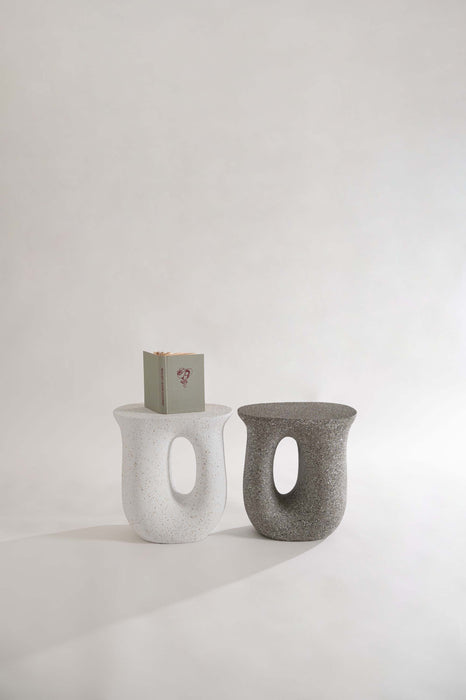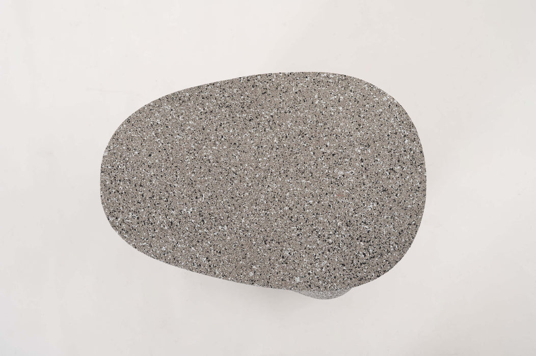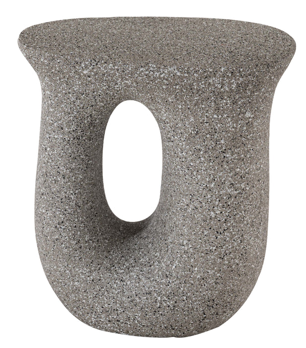 ざらりとした石のような質感とユニークな形が特徴のサイドテーブル。