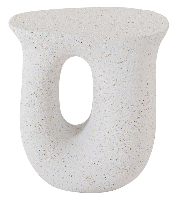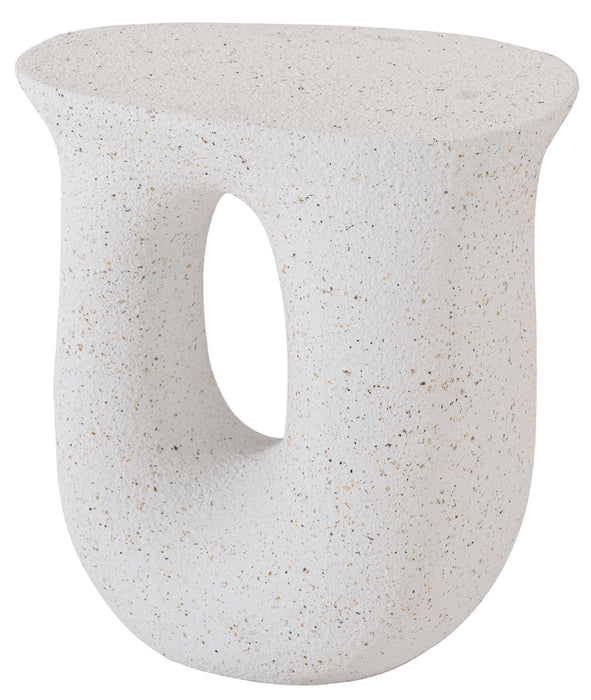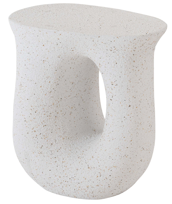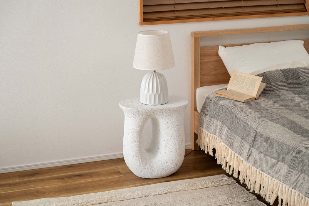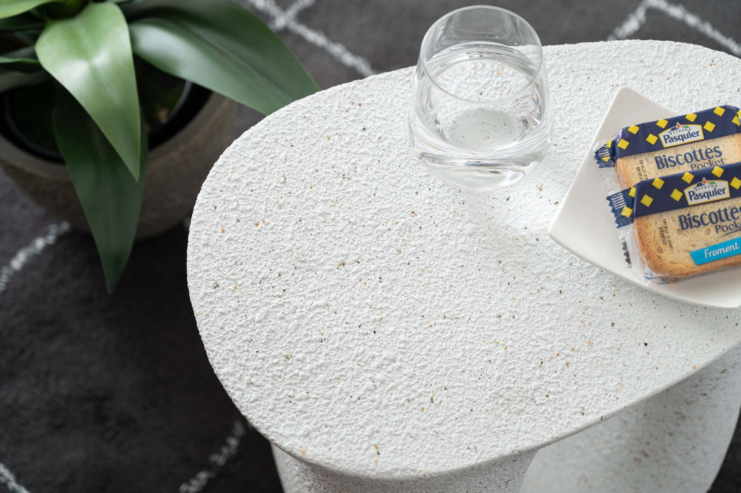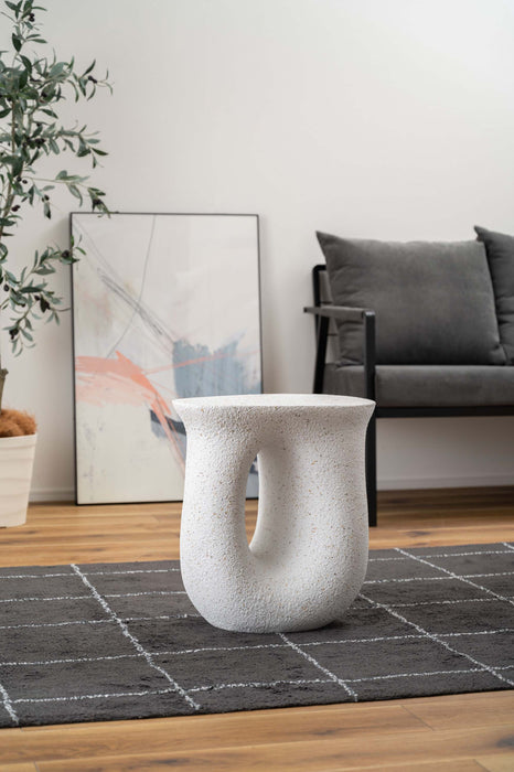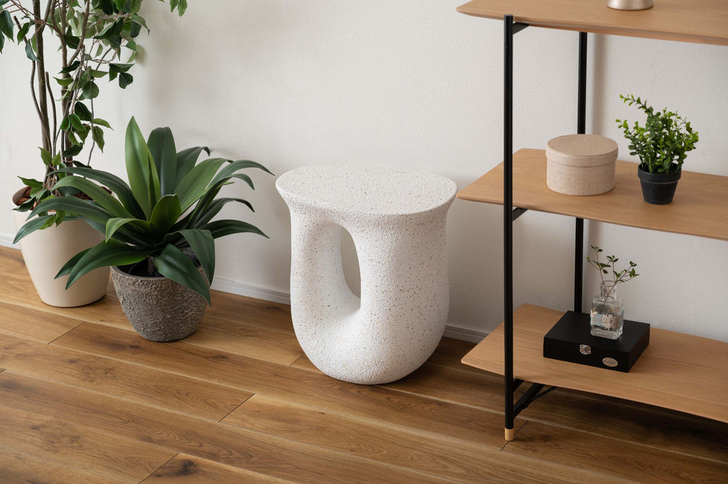 ざらりとした石のような質感とユニークな形が特徴のサイドテーブル。
